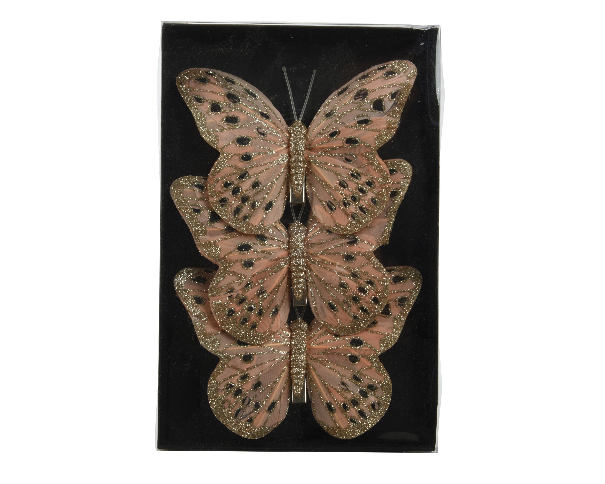 🦋 Set 3 Farfalle Rosa Cipria con Glitter – Raffinatezza e Luce per il Tuo Natale ✨🎀