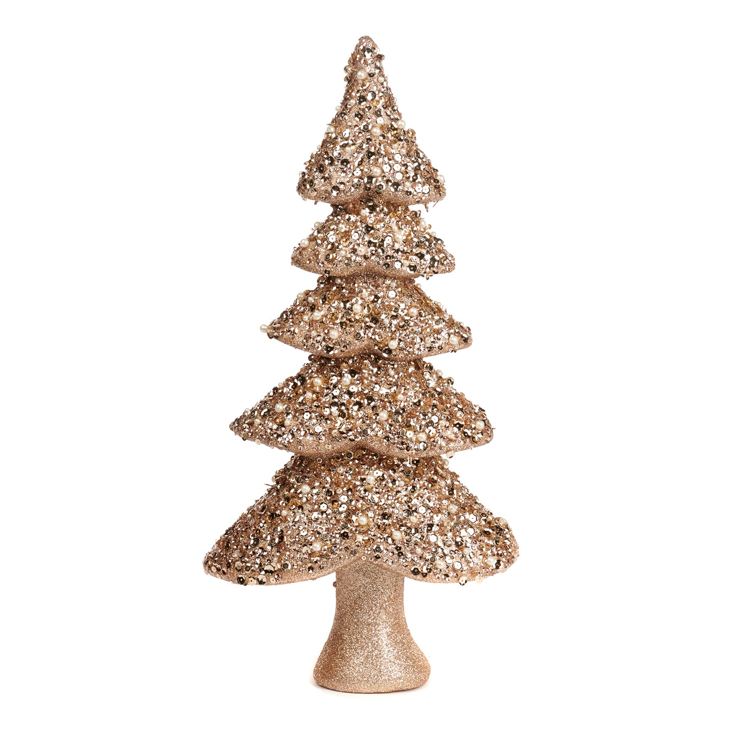 Albero Decorativo Oro Glitter con Perline e Paillettes