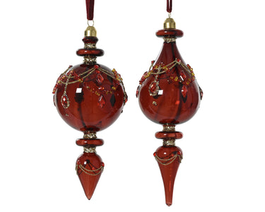 Porta un tocco di lusso e calore sul tuo albero di Natale con queste raffinate decorazioni in vetro soffiato dal colore rosso rubino intenso.