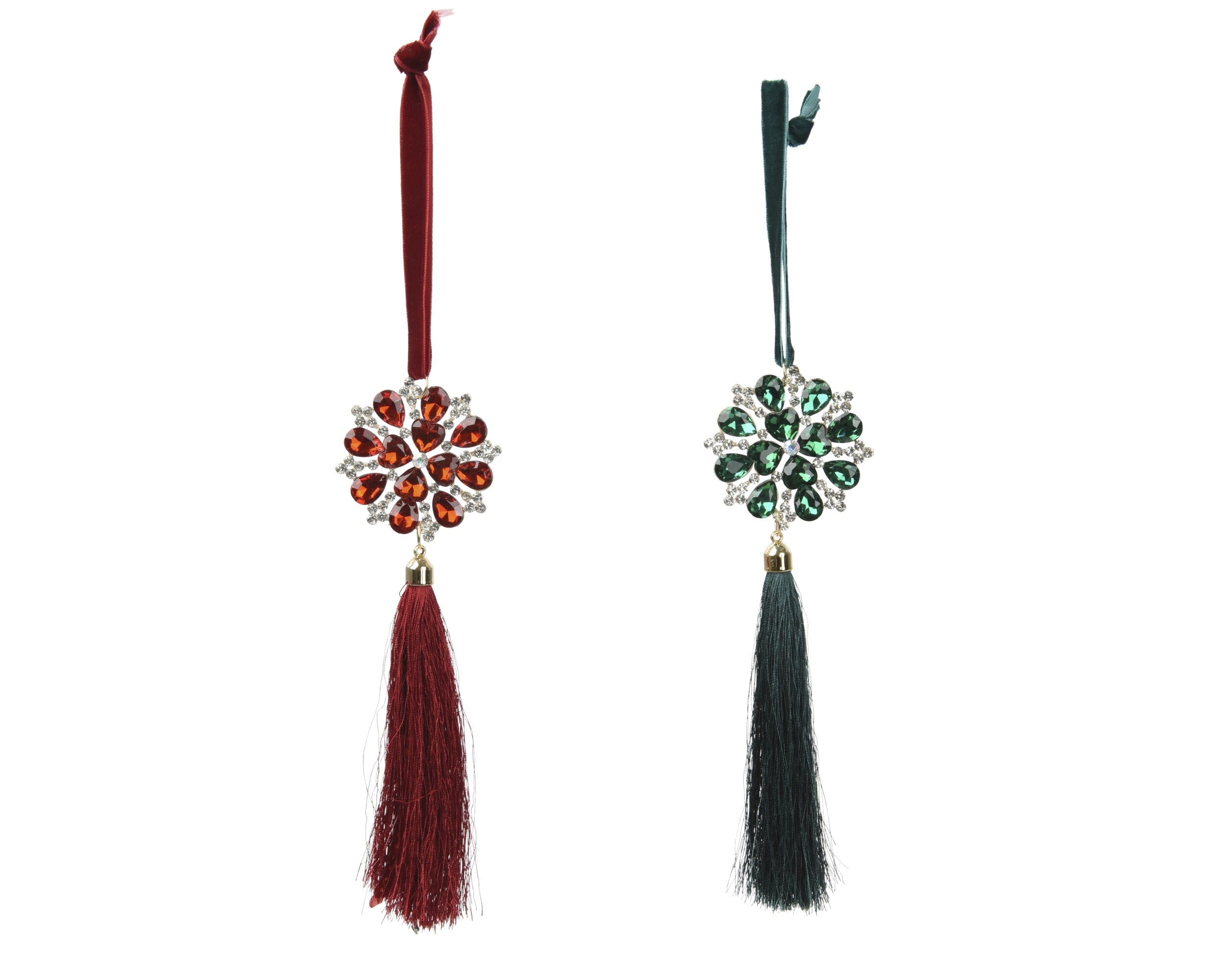✨ Decorazioni Pendenti con Nappa e Cristalli – Rosso & Verde ✨