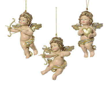 👼✨ Set 3 Angioletti Ornamentali – Cupido con Arco & Cuore Dorato ✨👼