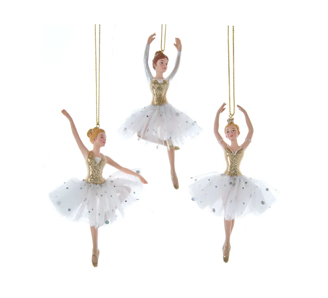 Set 3 Decorazioni Natalizie Ballerine con Abito Bianco e Oro ✨💃🎄