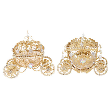 Un set di addobbi dal fascino fiabesco che richiama le carrozze delle principesse. Realizzate in elegante oro con dettagli di perle, strass e decorazioni brillanti, queste carrozze trasformeranno l’albero di Natale in una vera scenografia da sogno.