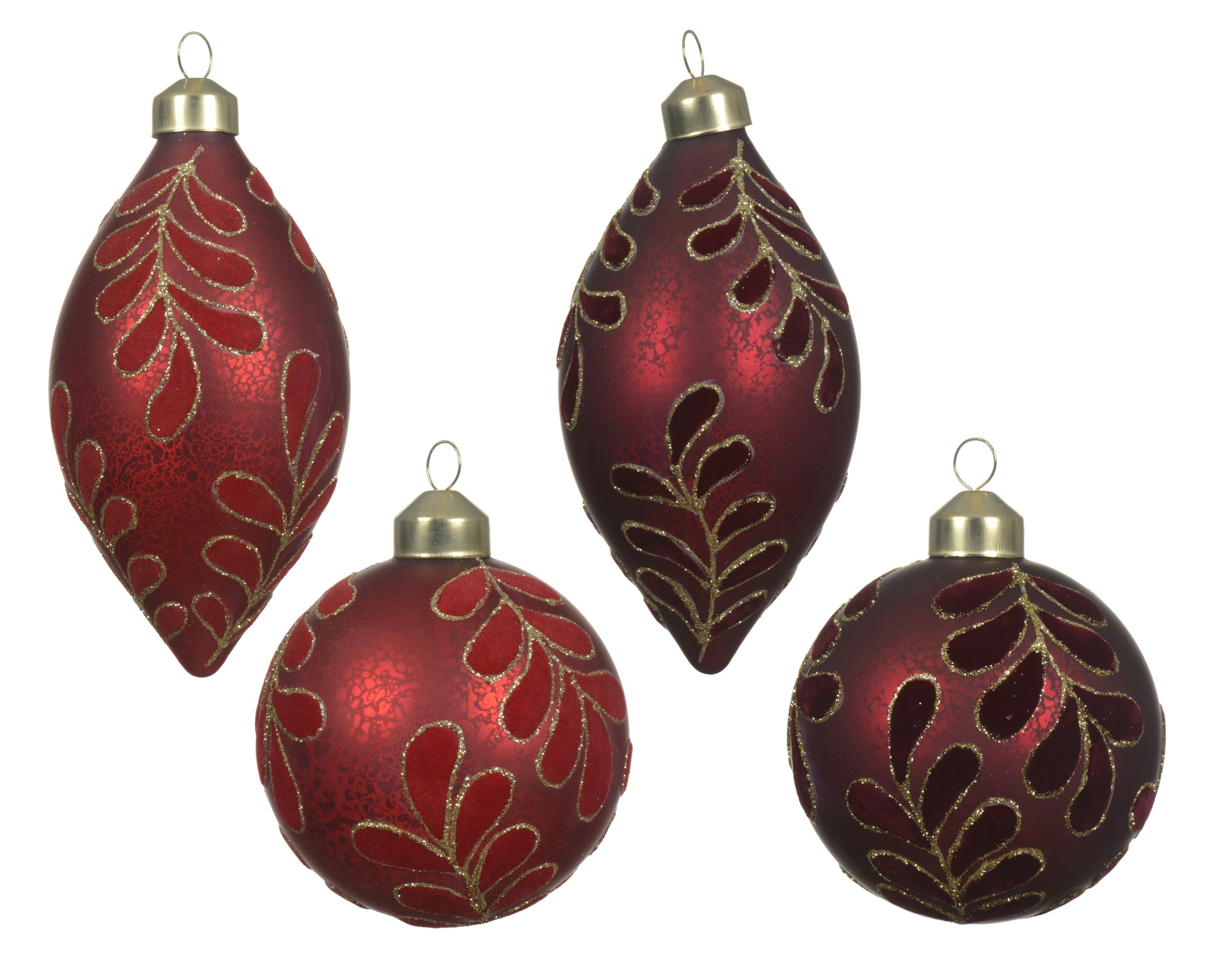 Raffinate ed eleganti, queste decorazioni natalizie in vetro sono perfette per chi ama un Natale classico e luminoso. Ogni pallina presenta un delicato motivo dorato a foglie su fondo rosso satinato, per un effetto sofisticato e senza tempo. 🌟