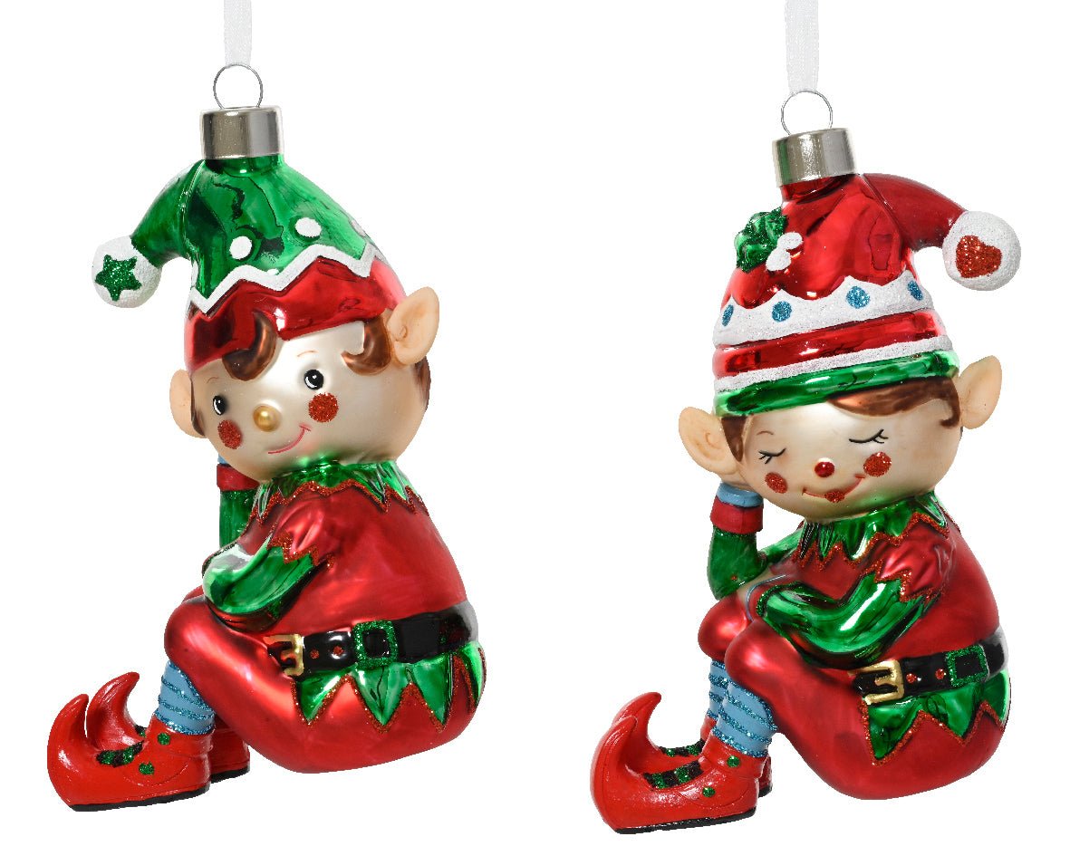 Set 2 Decorazioni Natalizie Elfi in Vetro