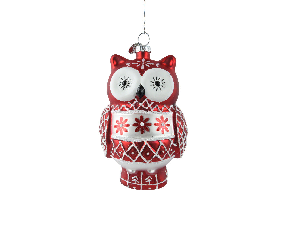 Decorazione Natalizia Gufo Rosso con Motivo Invernale