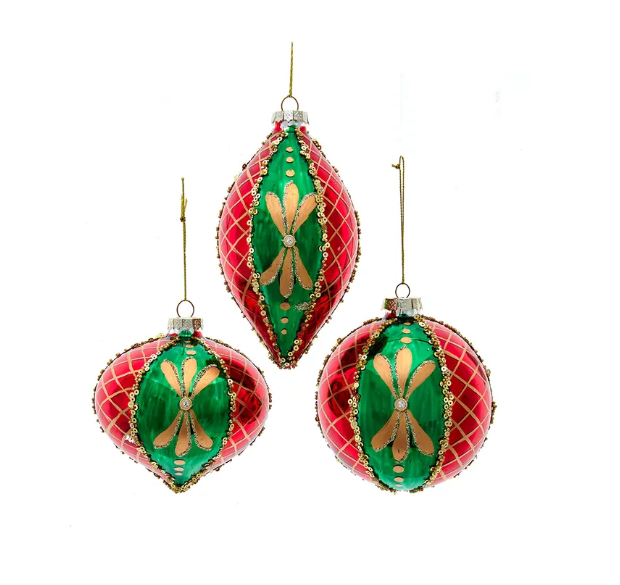 Set 3 Decorazioni Natalizie in Vetro Rosso e Verde con Dettagli Dorati 🎄✨