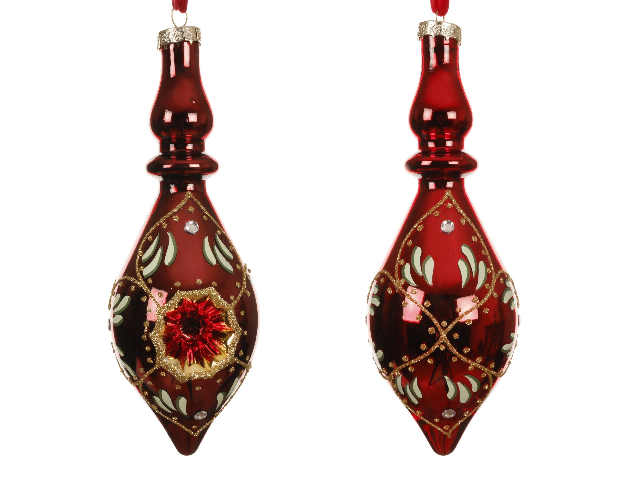 🎄 Set 2 Decorazioni Natalizie in Vetro – Stile Classico Rubino & Oro 🎄