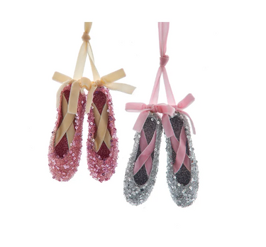 Un tocco elegante e raffinato per il tuo Natale! Queste scarpette da ballo, ricoperte di glitter e decorate con nastrini, ricordano la magia del balletto e dello Schiaccianoci, portando grazia e luce al tuo albero.