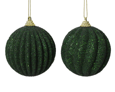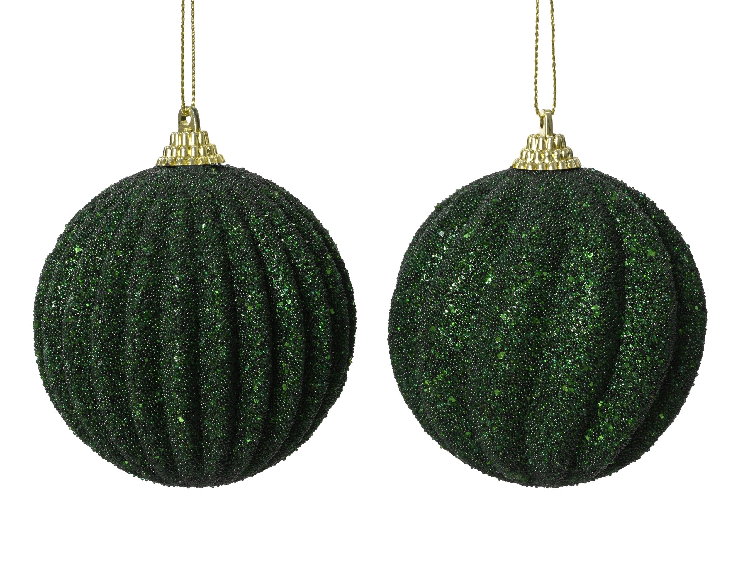 Porta un tocco di eleganza profonda e sofisticata al tuo albero di Natale con questo set di due palline verde bosco, caratterizzate da una texture ricca e tridimensionale. Le superfici scolpite creano giochi di luce unici grazie alla combinazione di microperle e glitter, donando un effetto lussuoso e moderno.