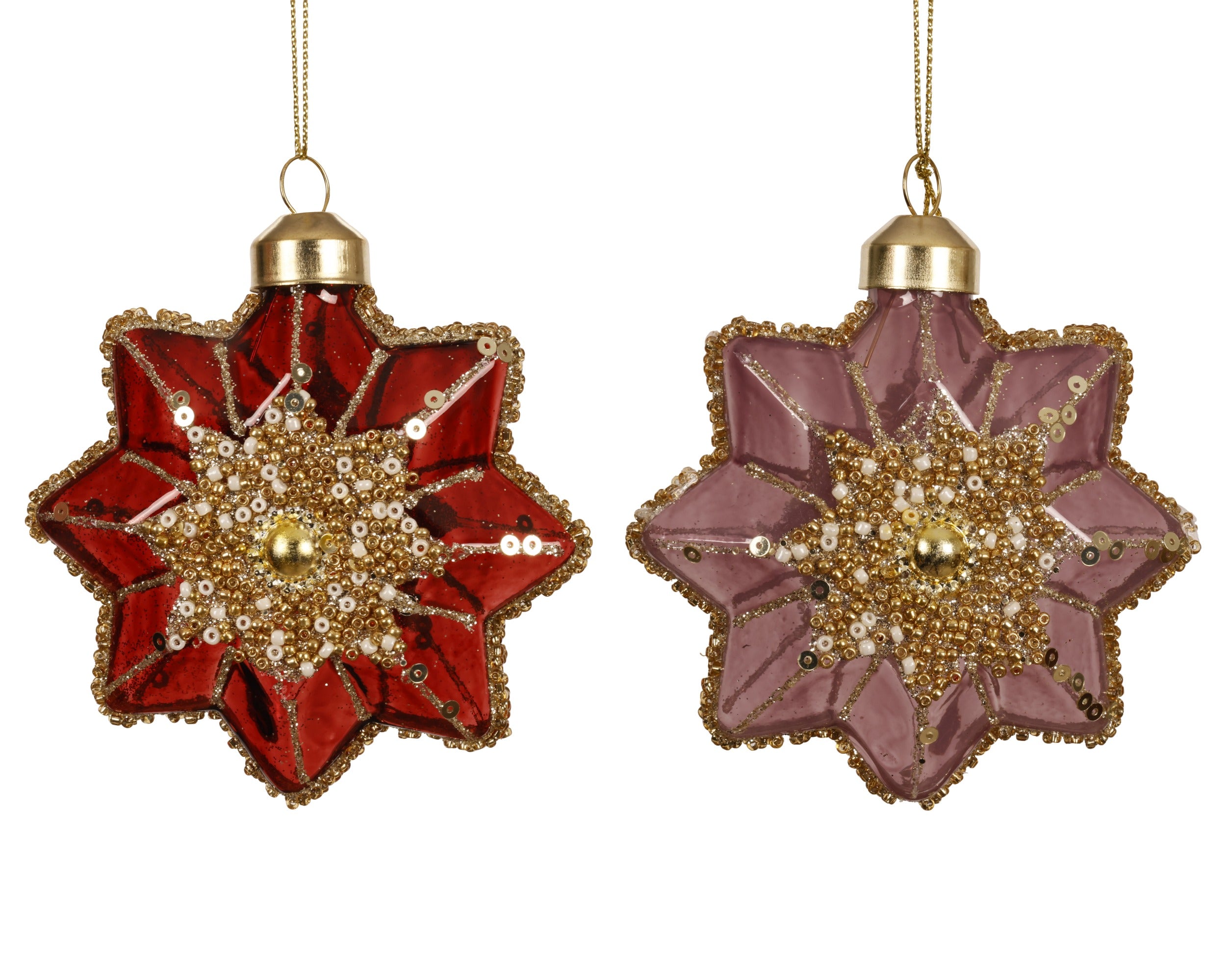 Dona luce e raffinatezza al tuo albero con queste splendide decorazioni a forma di stella floreale, riccamente ornate con perline dorate, paillettes e glitter luminosi ✨