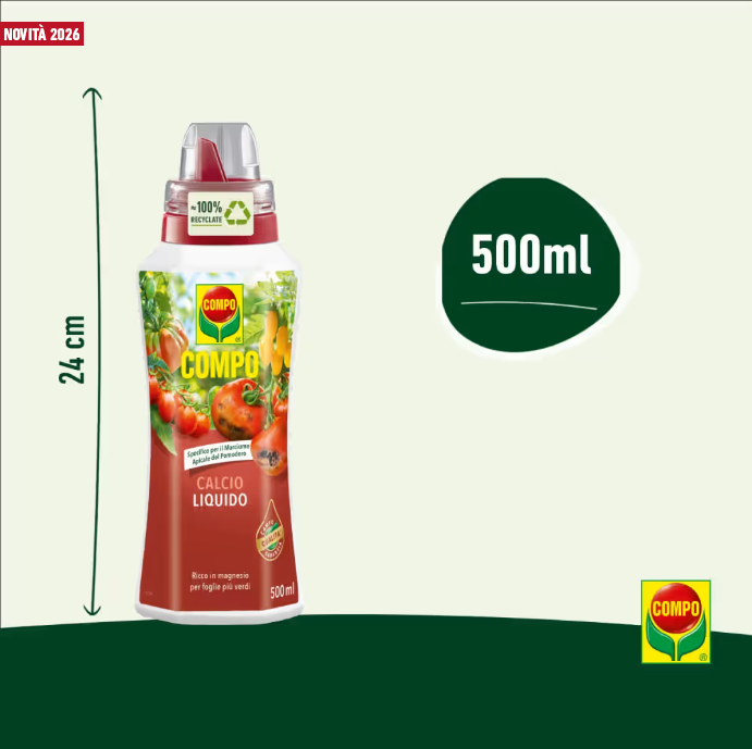 La formulazione contiene Calcio prontamente assimilabile e Mg che stimola la produzione di clorofilla, rendendo le foglie più verdi, sane e vigorose.