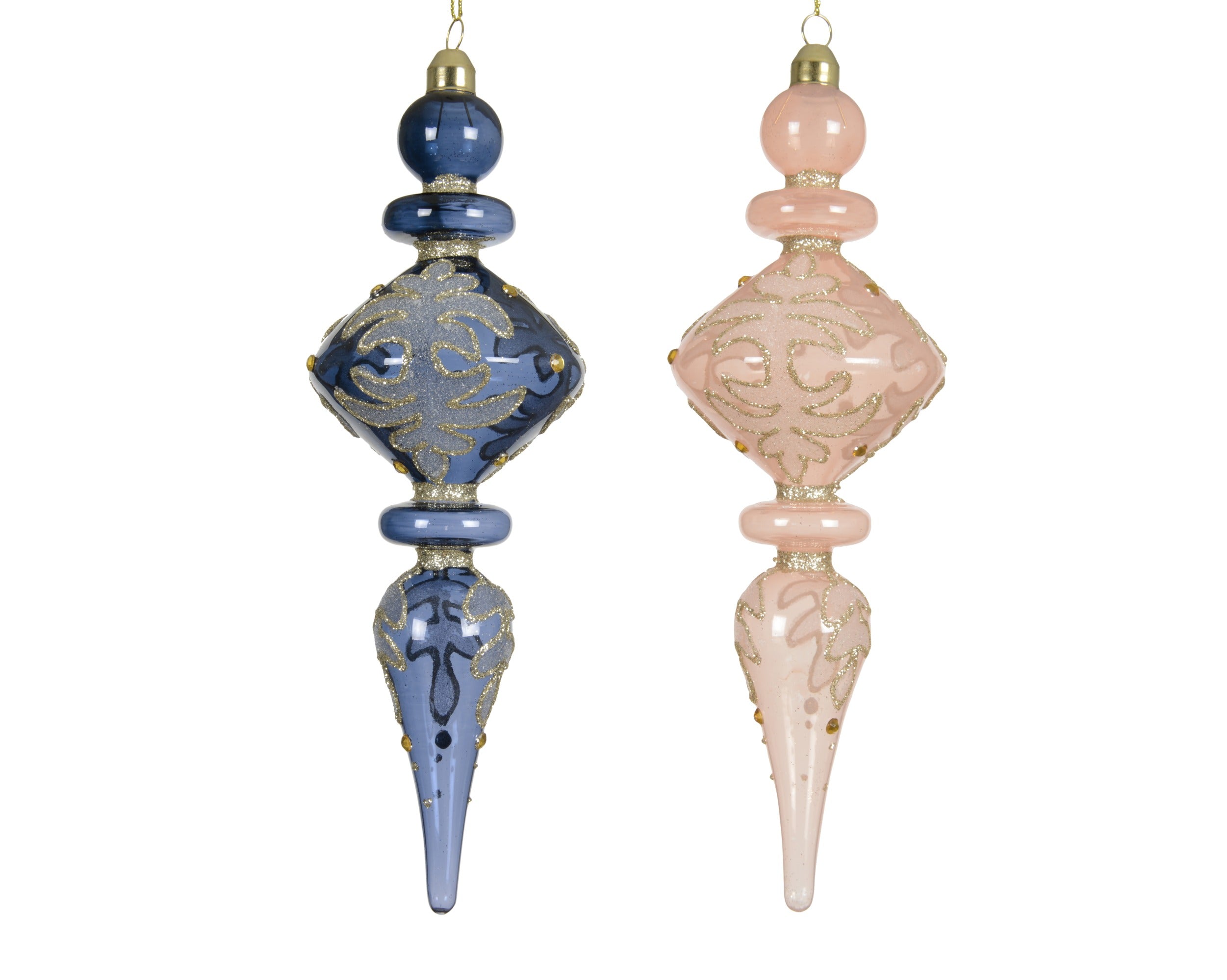 💫 Set 2 Decorazioni Natalizie Azzurro e Rosa con Glitter Oro – Stile Classico Elegante 🎄✨