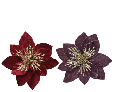 ❤️✨ Fiori Natalizi in Velluto con Pistilli Glitter – Set da 2 ✨❤️