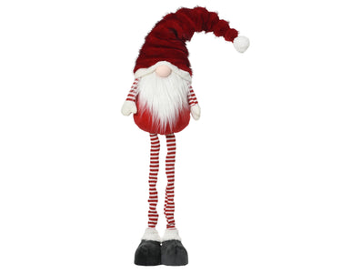 Un simpatico gnomo decorativo dal design slanciato e originale, ideale per portare un tocco di allegria e magia alle decorazioni natalizie. Il cappello rosso morbido con pompon, la lunga barba bianca e le gambe a righe rosse e bianche creano un irresistibile effetto fiabesco in perfetto stile nordico.