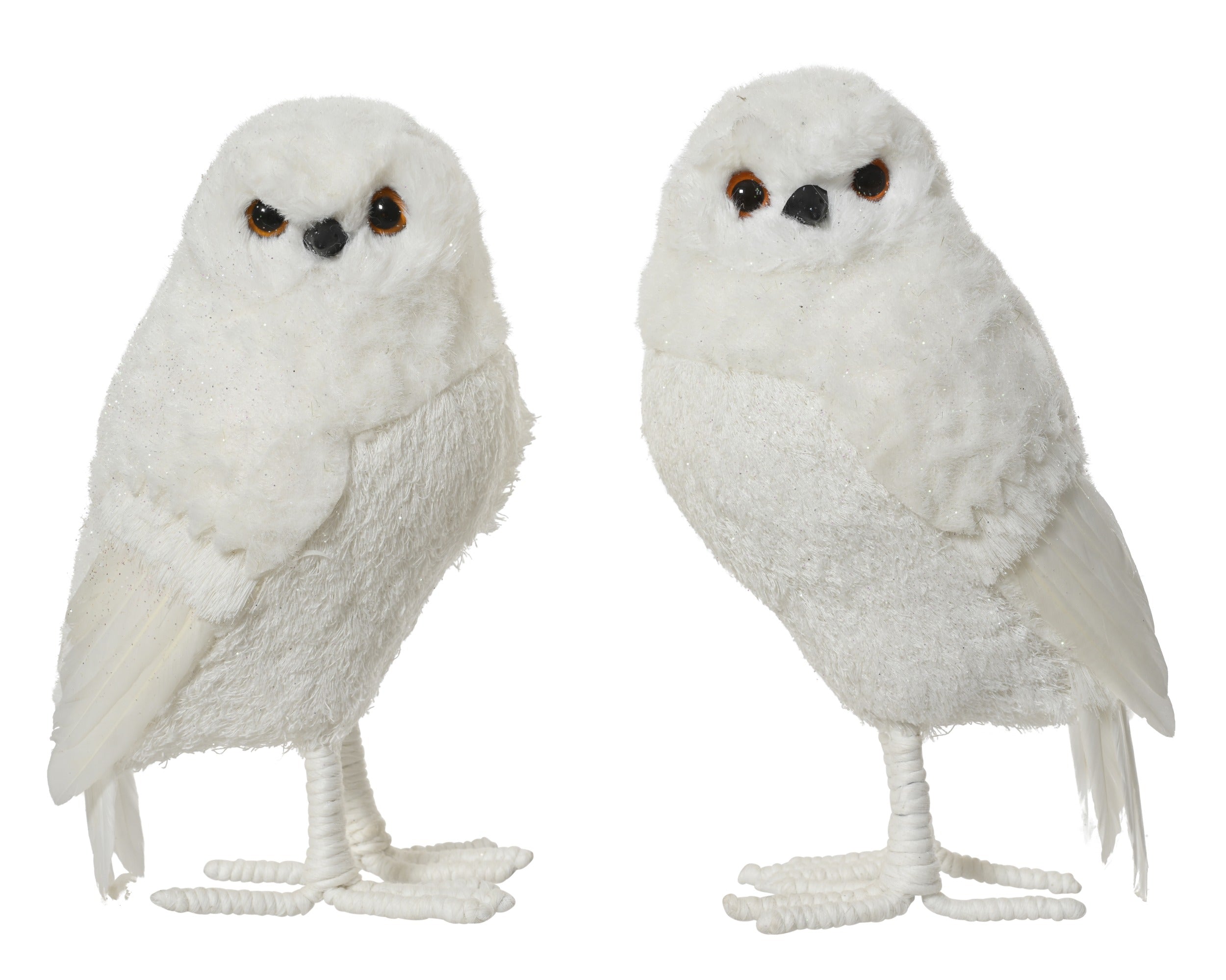 Set composto da 2 civette decorative in tessuto polistirolo e piume sintetiche
