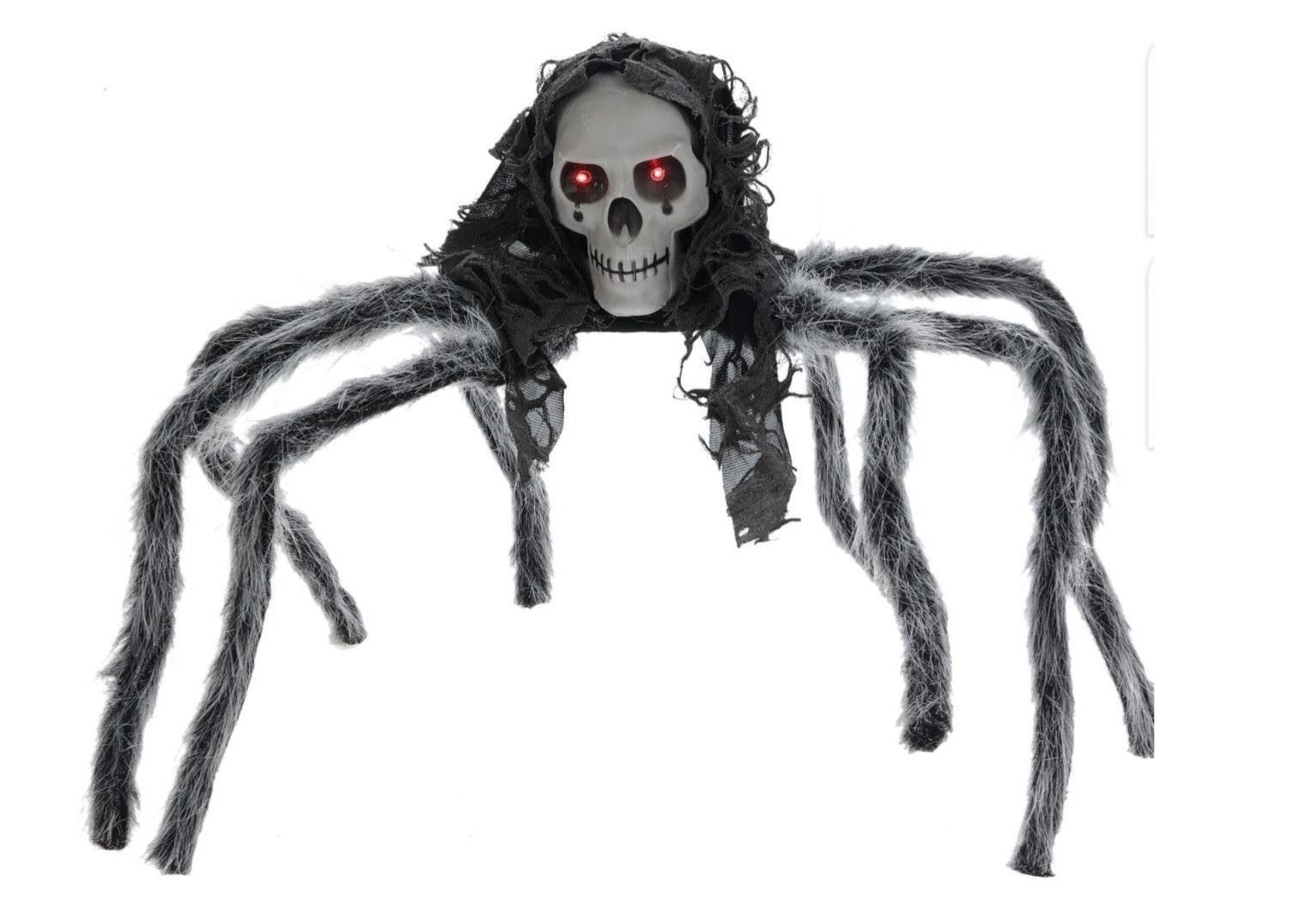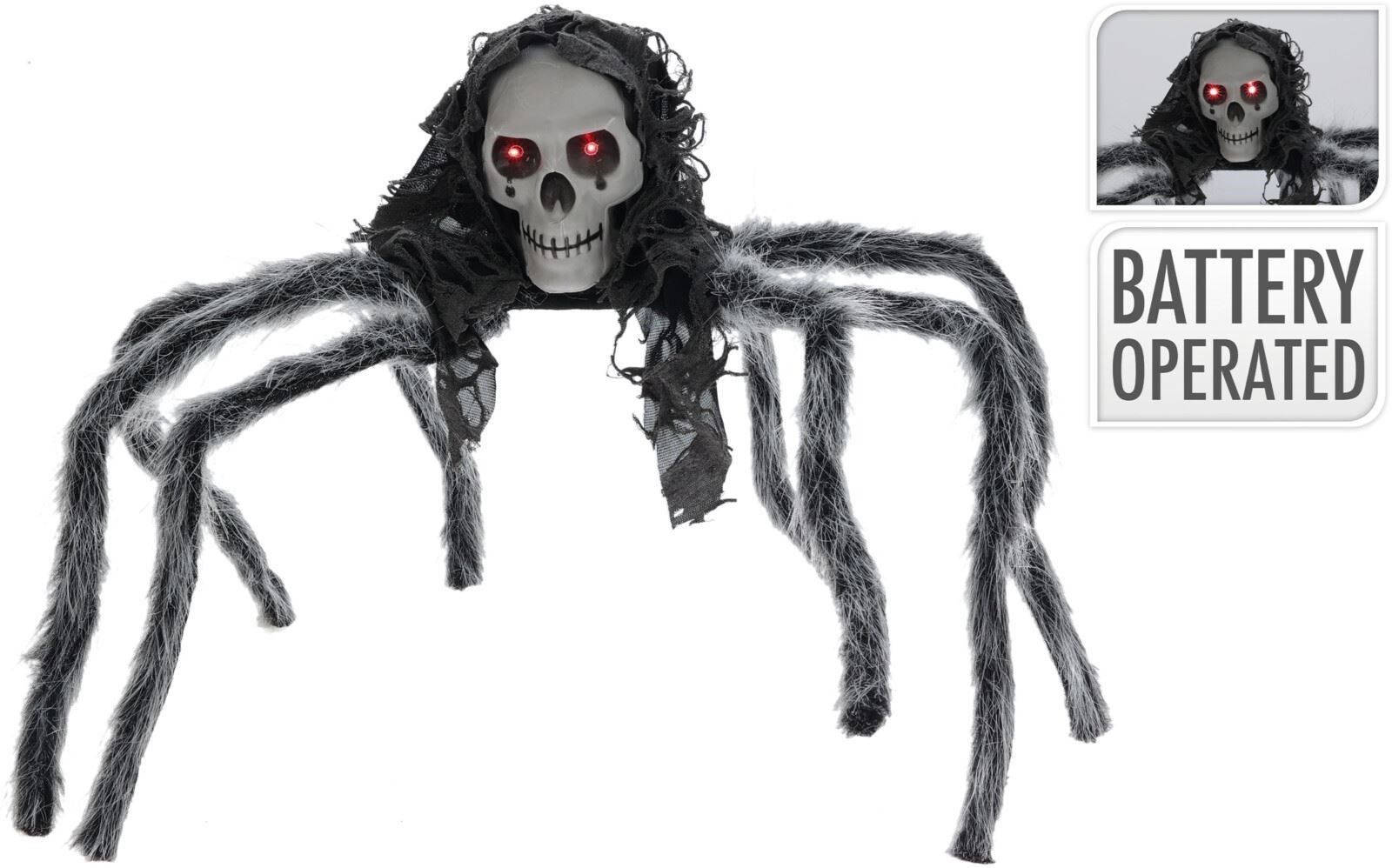 Un’agghiacciante decorazione da interno o esterno per rendere la tua casa ancora più spaventosa durante la notte di Halloween! Il ragno ha il corpo a forma di teschio, con occhi rossi LED luminosi che si accendono per creare un effetto terrificante.