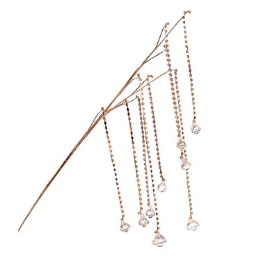 Un elemento scenografico e raffinato che dona luce e movimento a qualsiasi decorazione natalizia. Questo elegante ramo dorato con pendenti di cristalli acrilici è perfetto per aggiungere un tocco glamour al tuo albero, alle composizioni floreali o ai centrotavola delle feste.