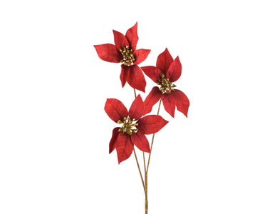 Un ramo decorativo raffinato e scenografico, perfetto per portare in casa tutta la magia del Natale. Le iconiche stelle di Natale rosse, realizzate in tessuto dall’effetto vellutato, sono arricchite da eleganti dettagli dorati al centro che donano luminosità e un tocco prezioso.