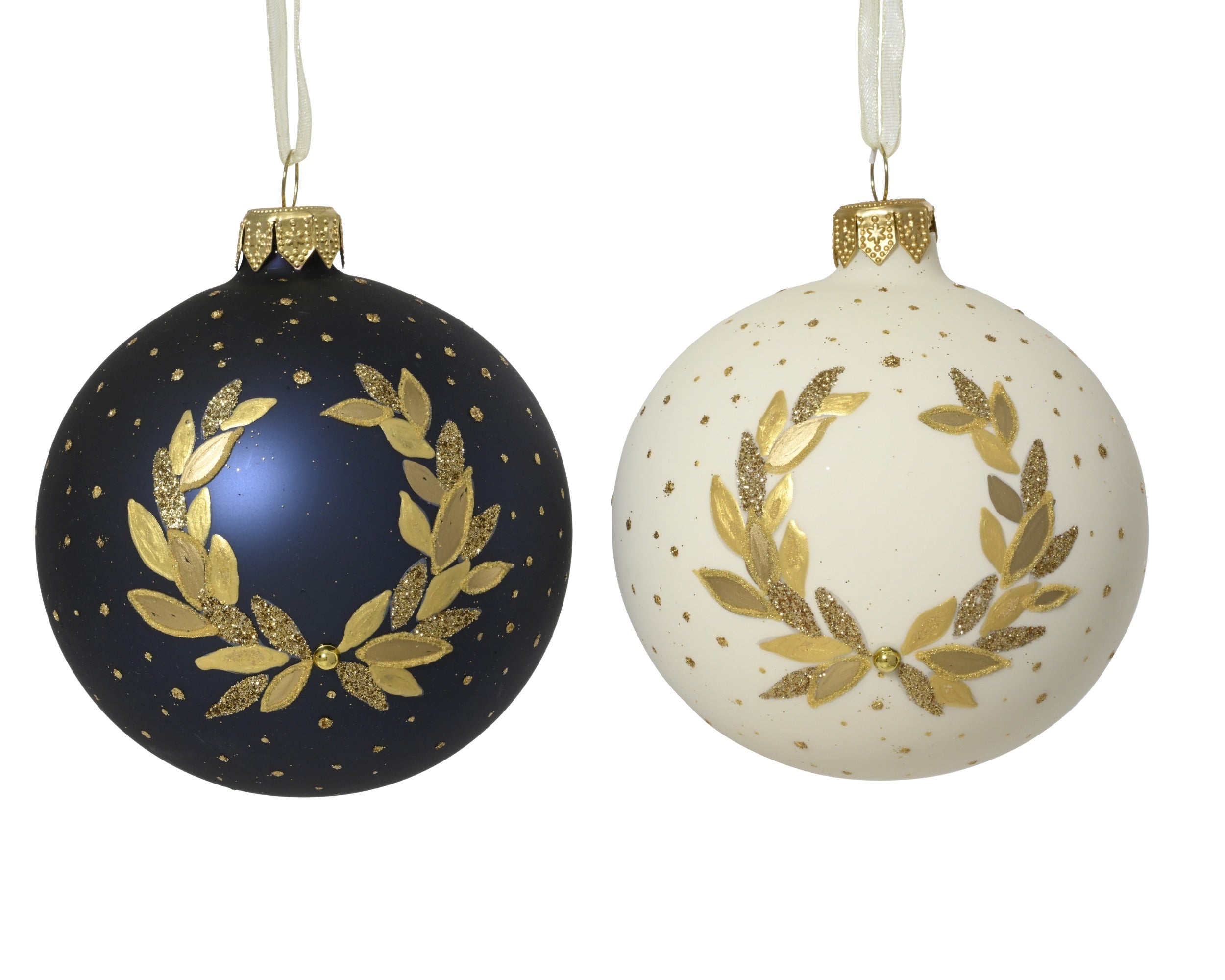 🎄 Set 2 Palle di Natale Blu e Avorio con Ghirlanda Dorata – Eleganza Classica ✨💙🤍