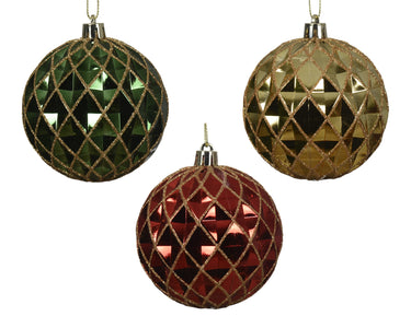 Il motivo diamantato con glitter dorato crea splendidi giochi di luce, rendendo ogni pallina un piccolo gioiello natalizio.