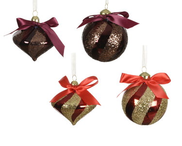 🎀✨ Set Palline Natalizie “Lusso con Fiocco” – 4 Decorazioni Assortite 🎄