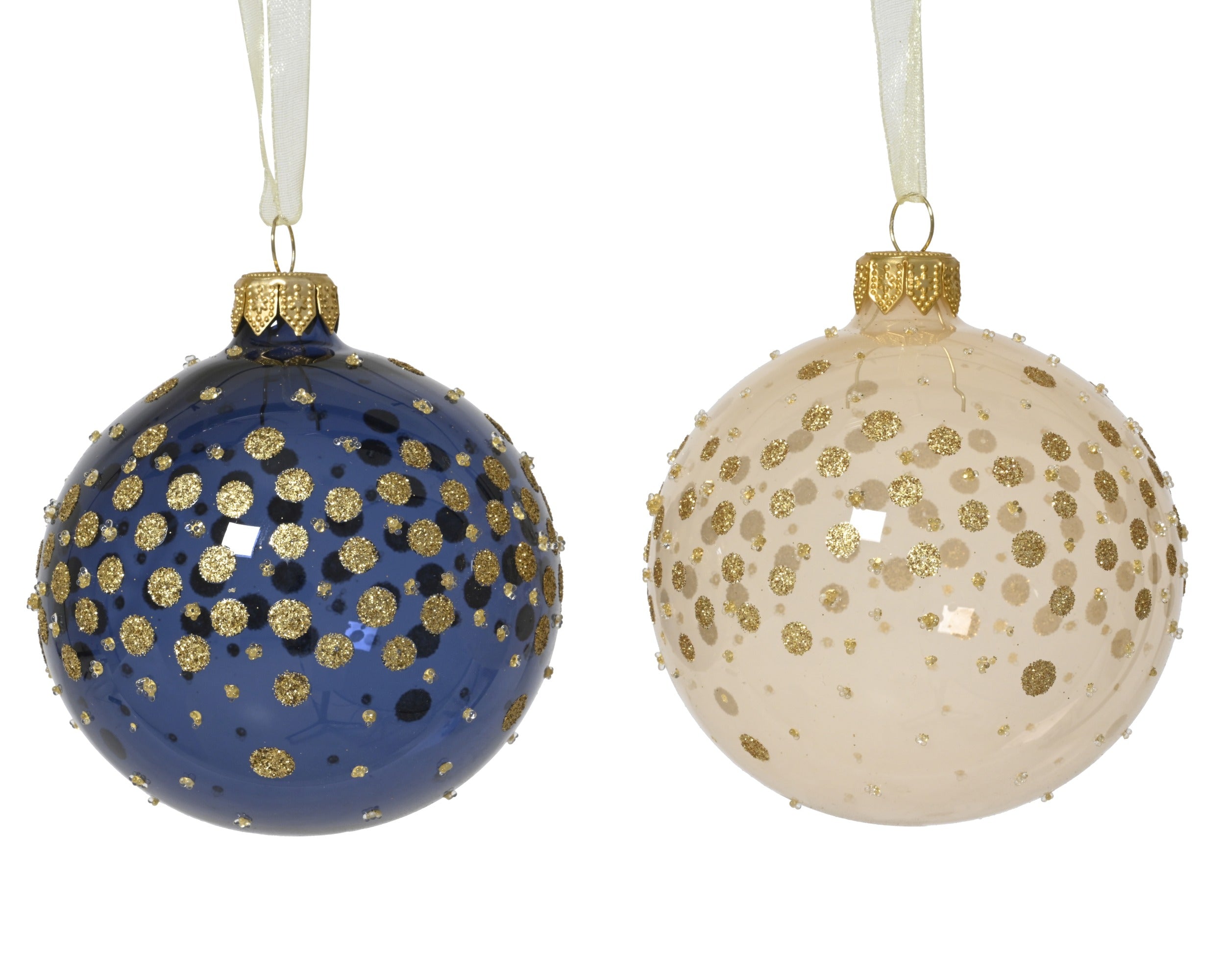 KAEMINGK - Sfera in vetro blu e oro 8cm Cod. 051043