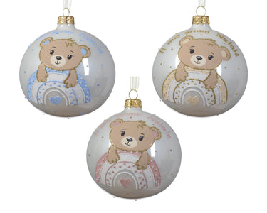 Un ricordo prezioso e tenerissimo del primo Natale del tuo bambino! Queste adorabili palline in vetro, decorate a mano con un dolce orsetto e delicati dettagli glitter, sono perfette per celebrare un momento speciale in famiglia.