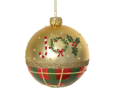 🎄 Pallina Natalizia “JOY” Oro con Motivo Festivo – Tradizione e Allegria ✨