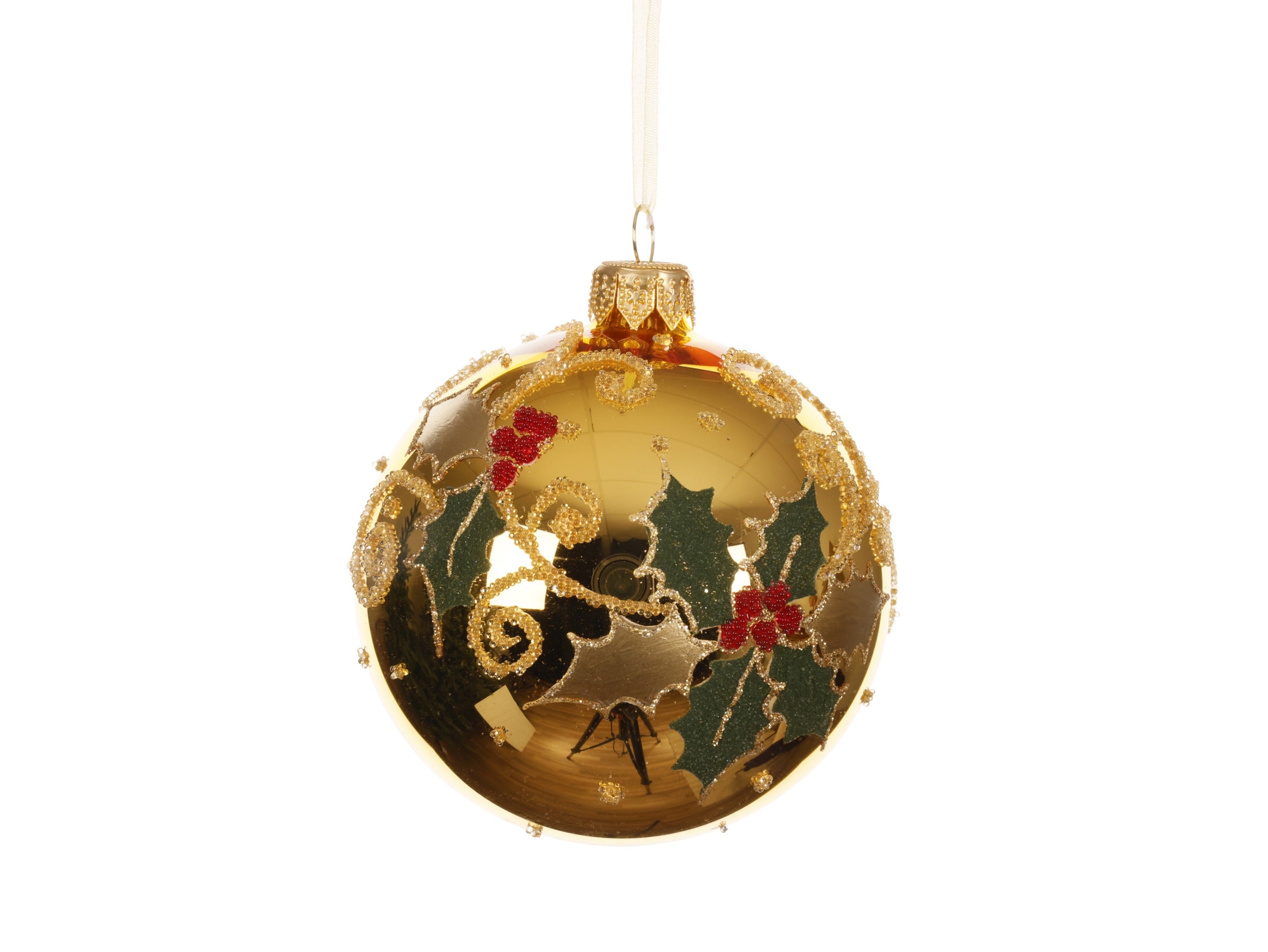 KAEMINGK - Sfera in vetro decorata agrifoglio 8cm Cod. 050949