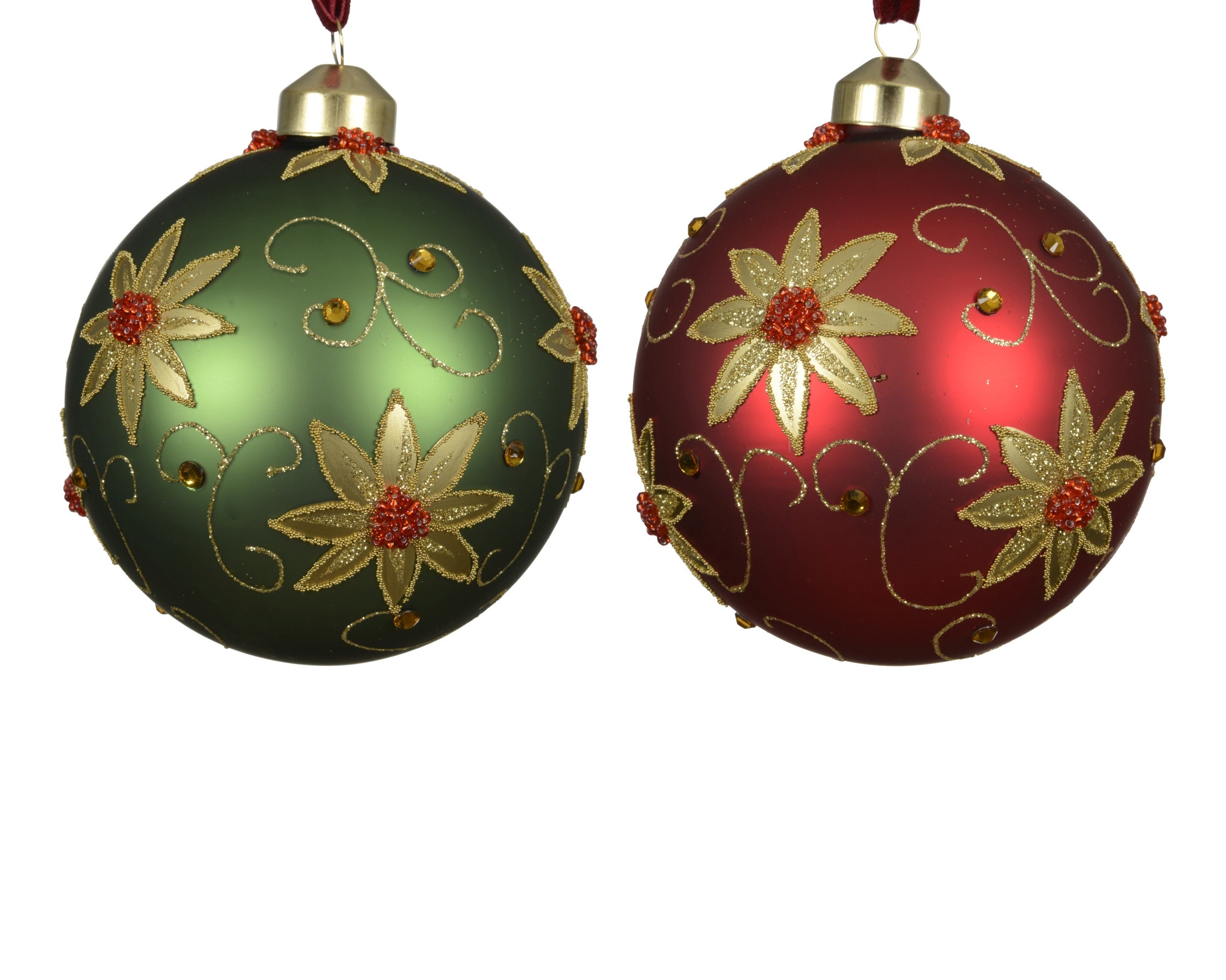 🎄 Set 2 Palline di Natale Decorate – Fiori Dorati in Rilievo 🎄
