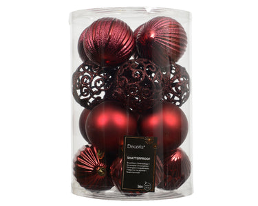 Metti in risalto il tuo albero di Natale con queste bellissime palline bordeaux per l'albero di Natale. Sfere Keaming dal materiale ludico e opaco. Le sfere perfette come decorazioni per albero di Natale, queste palline possono essere combinate perfettamente con molte altre decorazioni e personaggi natalizi. Le sfere bordeaux di Natale sono perfette anche per decorare la corona dell'Avvento, una ghirlanda da mettere alla porta o per decorare la tavola.