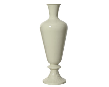 Realizzato in vetro con una splendida finitura lucida color avorio, questo vaso si distingue per la sua silhouette slanciata e armoniosa, sostenuta da una base importante che gli conferisce stabilità ed eleganza.